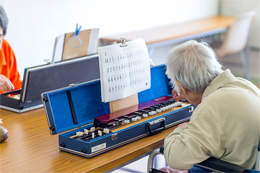 大正琴は、ボランティアの講師に来ていただいて行っています。月に一度程度講師が来られますので、それまでの間に個人活動で自主練習をするというようにしています。